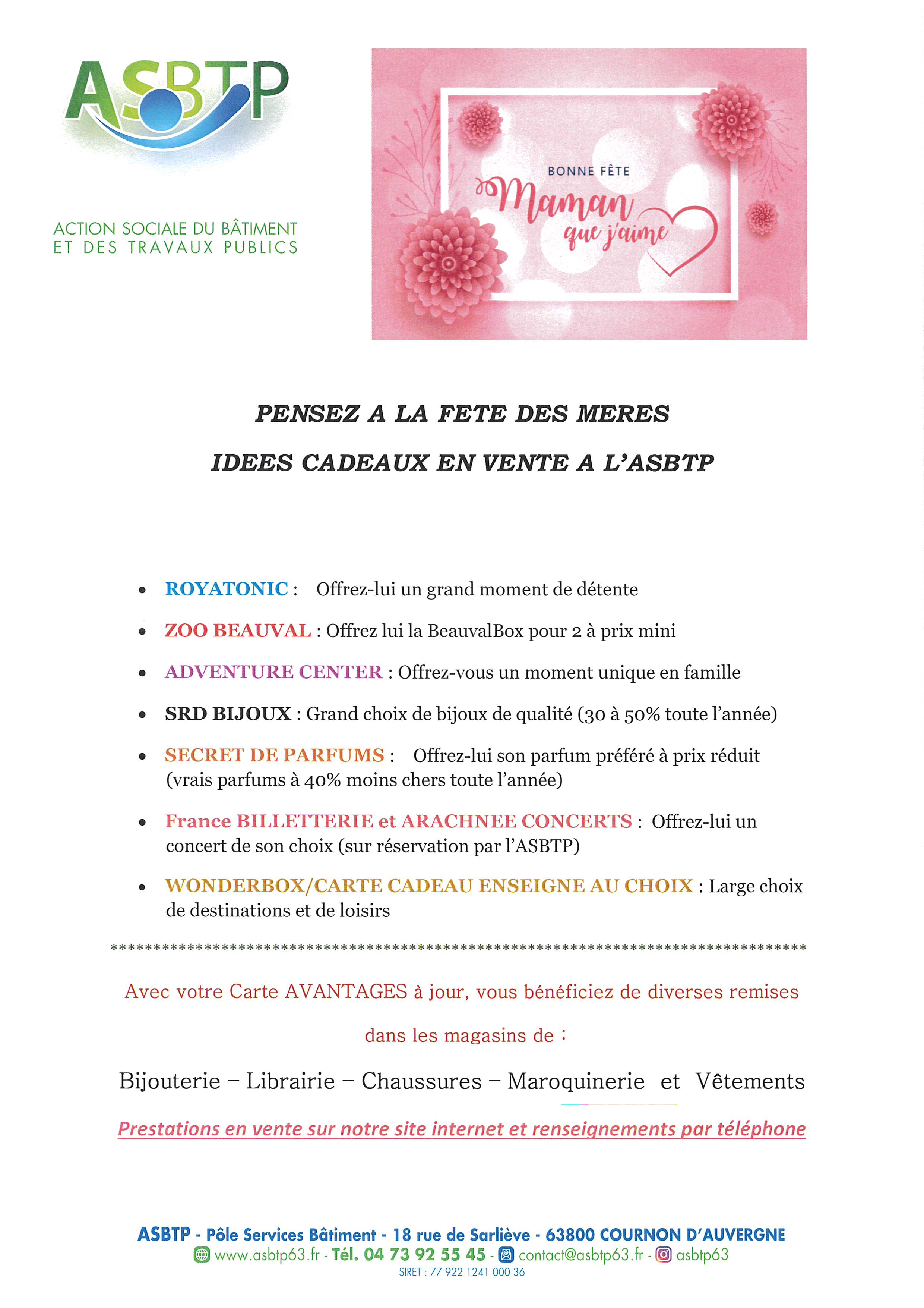 IDÉES CADEAUX EN VENTE A L'ASBTP